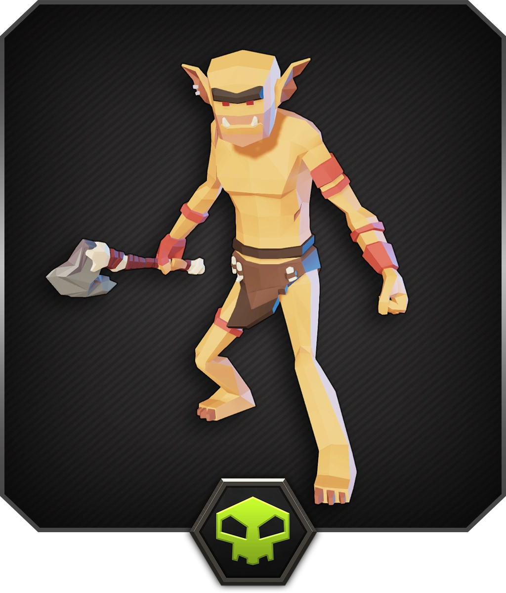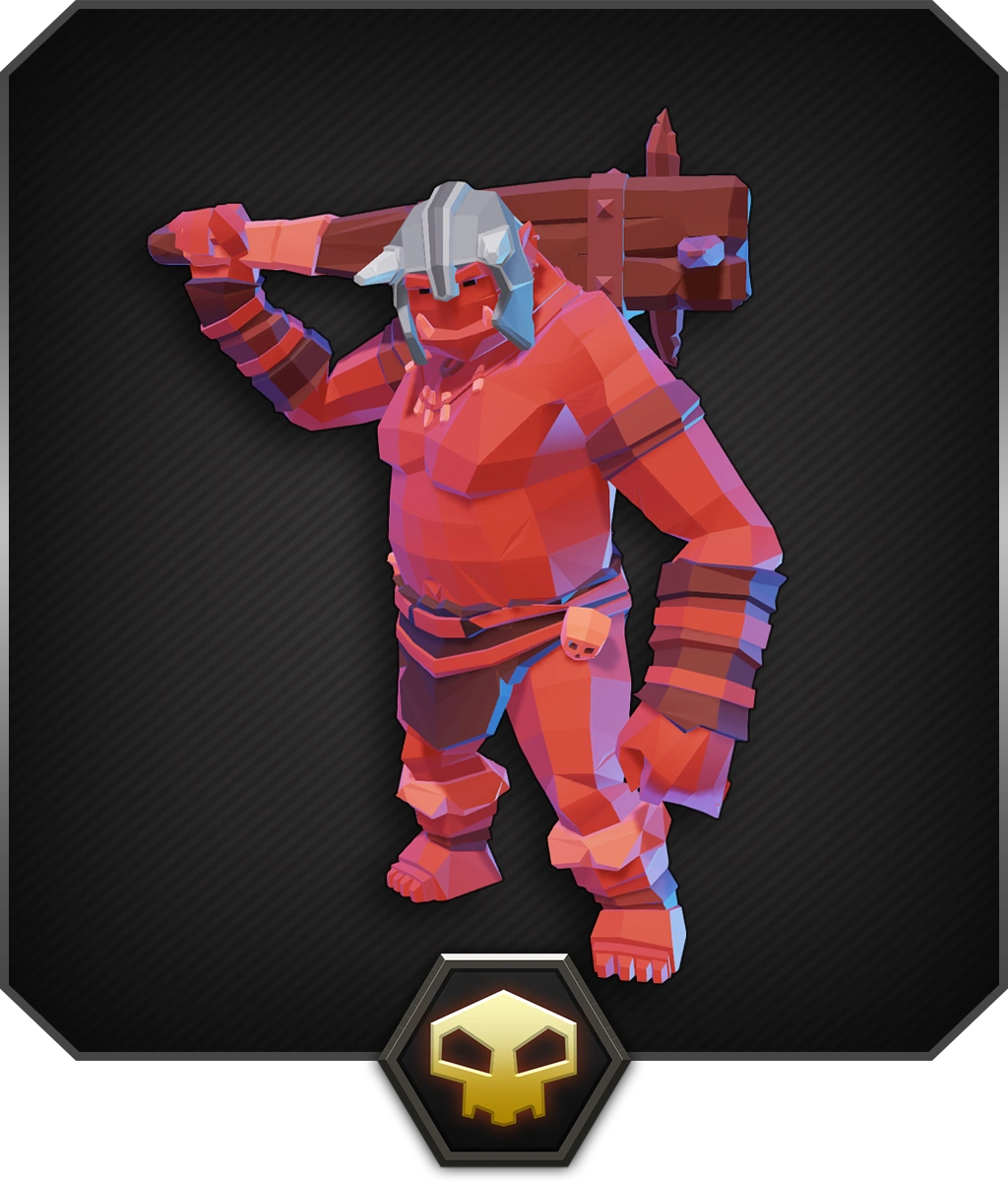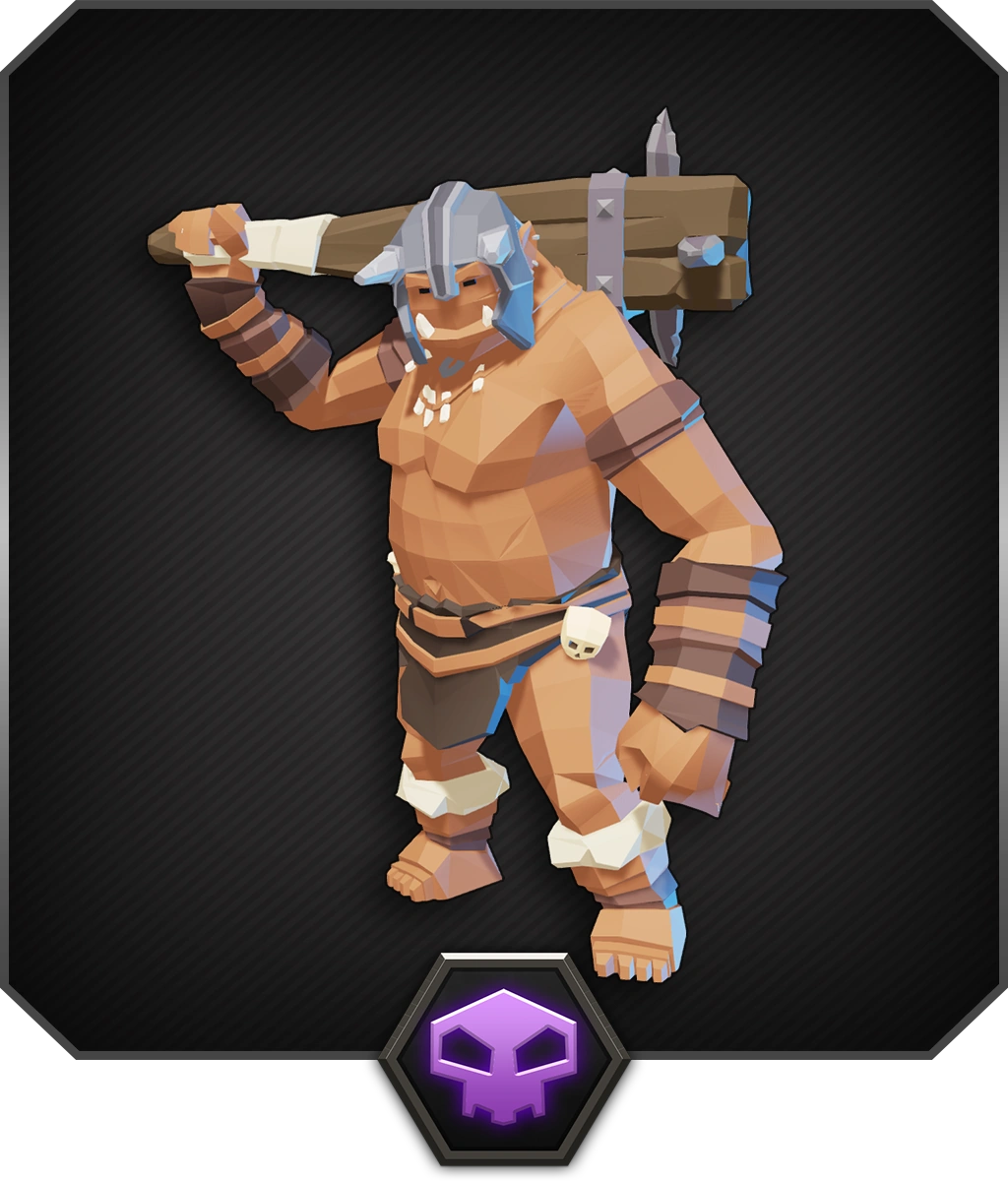 Slowly swings at you with his big mace.